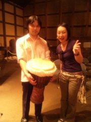ライブ終了後、パーカッショニストの 村尾コージさん。