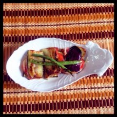 ・なす ・いんげん ・ベーコン ・チーズ ・トマト ・塩 ・胡椒 ・オリーブ油<作り方>