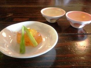そしておつまみは、「柿のゼリー」と「牛蒡とこんにゃくの赤ワイン煮」を食べました。